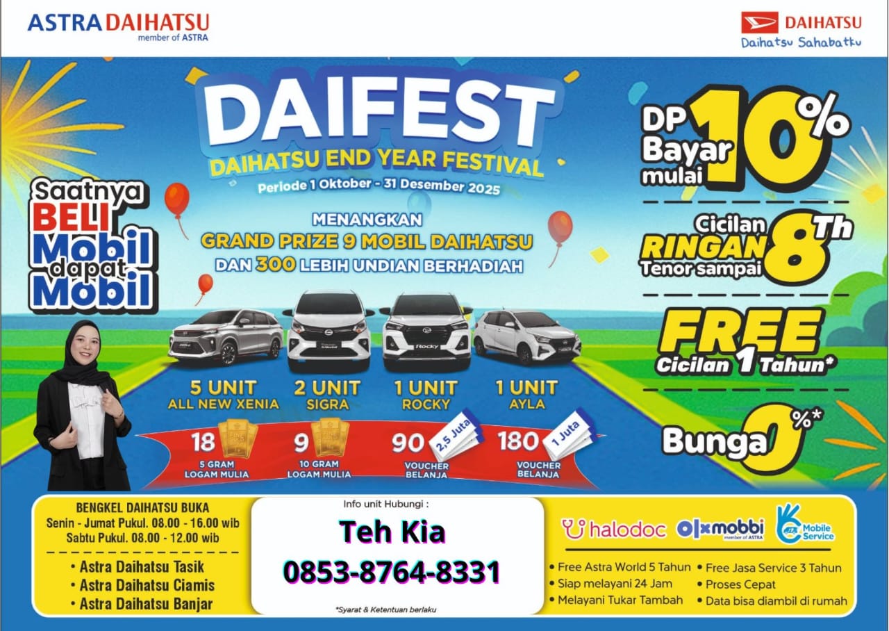 Website Dealer Resmi Astra Daihatsu Banjar Terbaik memberikan segala kemudahan dan kepuasan pelanggan untuk memilih mana varian mobil yang diinginkan. Promo Daihatsu Ayla ,Daihatsu Sigra ,Daihatsu Xenia, Promo daihatsu Granmax,Promo daihatsu Terios, Promo daihatsu Rocky Menjadi prioritas utama kami untuk menciptakan kenyamanan pelanggan, Hubungi Kami Sekarang Juga proses mudah data akan kami bantu sampai approve dan mobil impian anda akan segera kami kirim kerumah